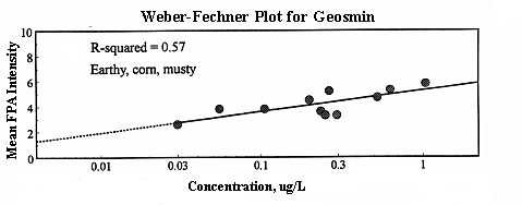 Once flavor profile analysis has been performed on a particular compound, the data can be organized for easy interpretation into a Weber-Fechner plot. This graph displays the mean intensity of the odor recorded by the flavor analysis panelists versus the concentration of the substance.